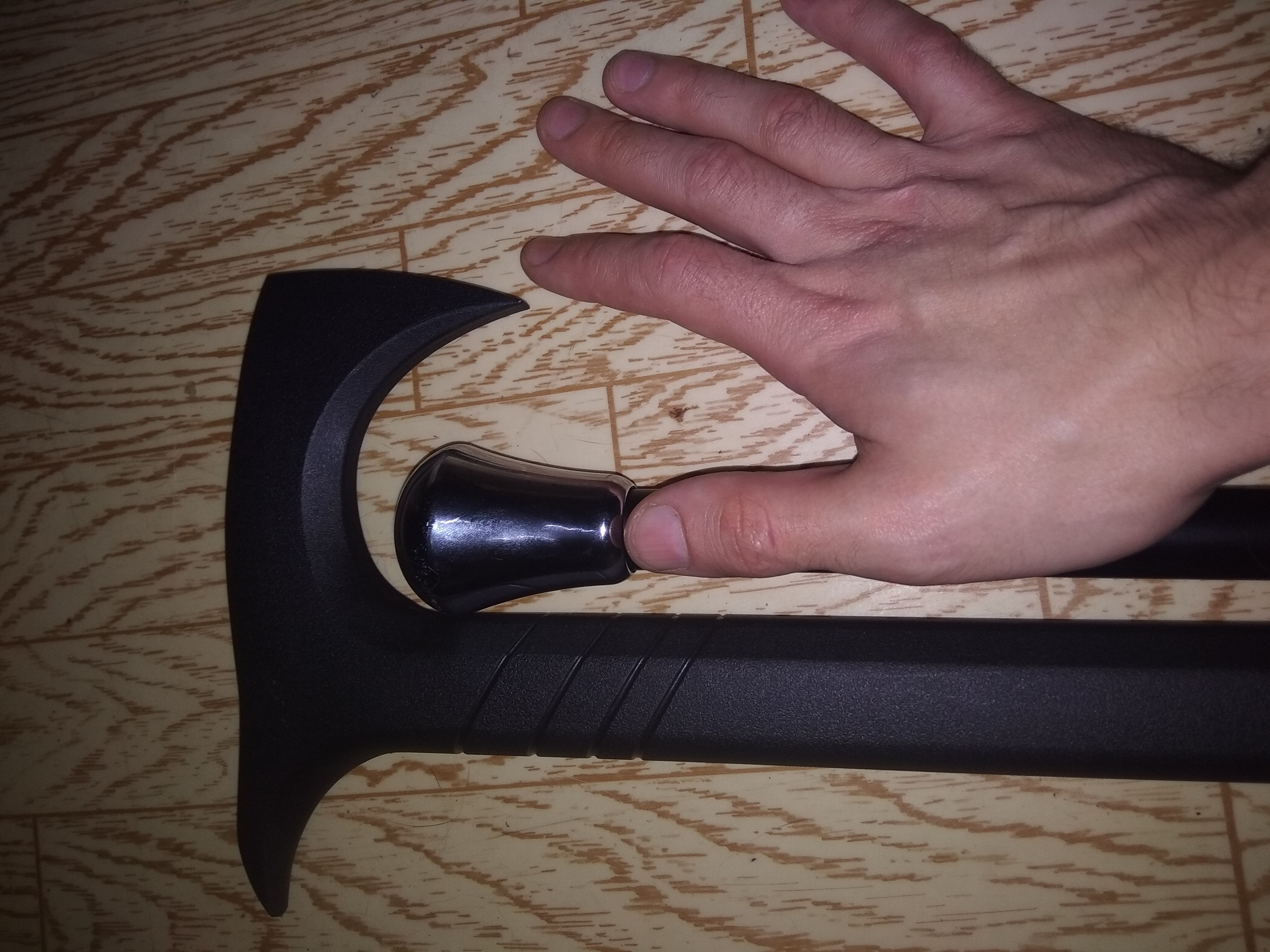 - трость великолепно отшлифована, но пара падений из рук по касательной (поставите и отпустите) на асфальт оставляет ощутимые следы как на рукояти так и на самой трости.